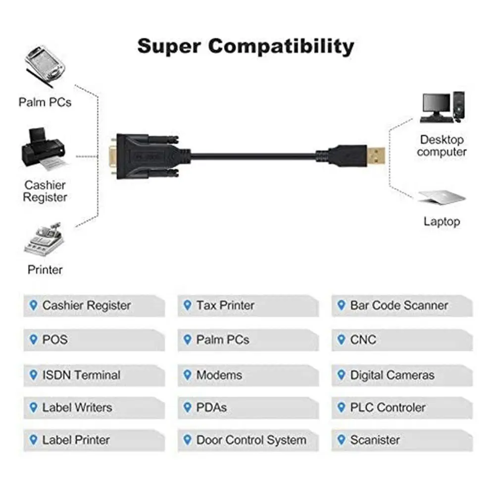 3. Easy Connectivity: USB to RS232 adapter works with models, ISDN terminal adapters, digital cameras, label writers, palm PCs (Windows 11, 10, Windows 8, windows 7–should auto detect and install the drivers), PDAs, cashier register, CNC, PLC controller, tax printer, POS, bar code scanner, label printer, and devices with DB9 serial ports Please note that it’s not compatible with Cutting plotter, SCM