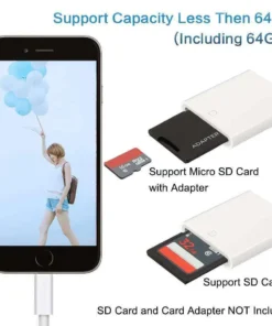 The Lightning SD card camera adapter is compatible with standard SD and SDHC. Through the card reader with the corresponding slot, it can also support mini and micro SD cards (the card reader is not included in this product). In addition, MMC cards are also supported.