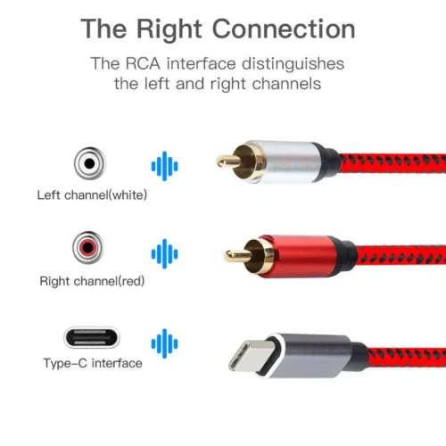 USB Type-C to Dual RCA Audio Cable Male to Male Gold- Plated Cable