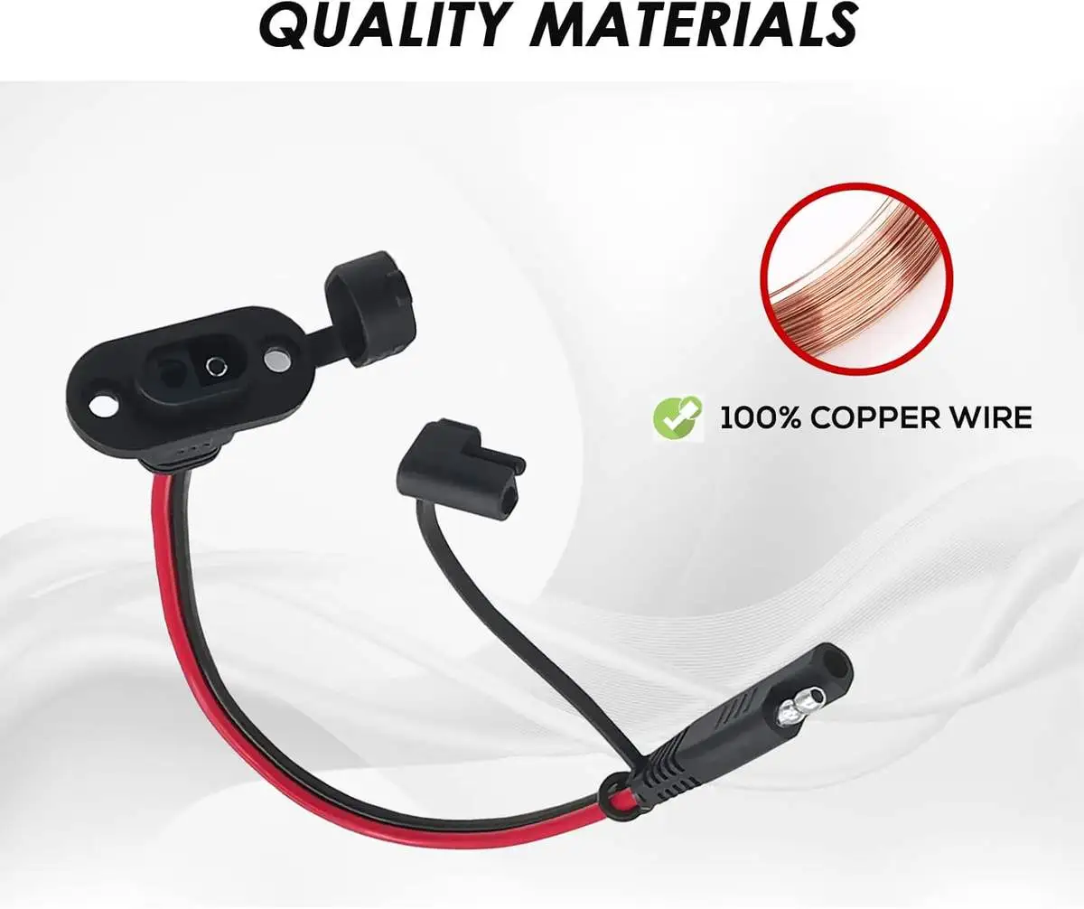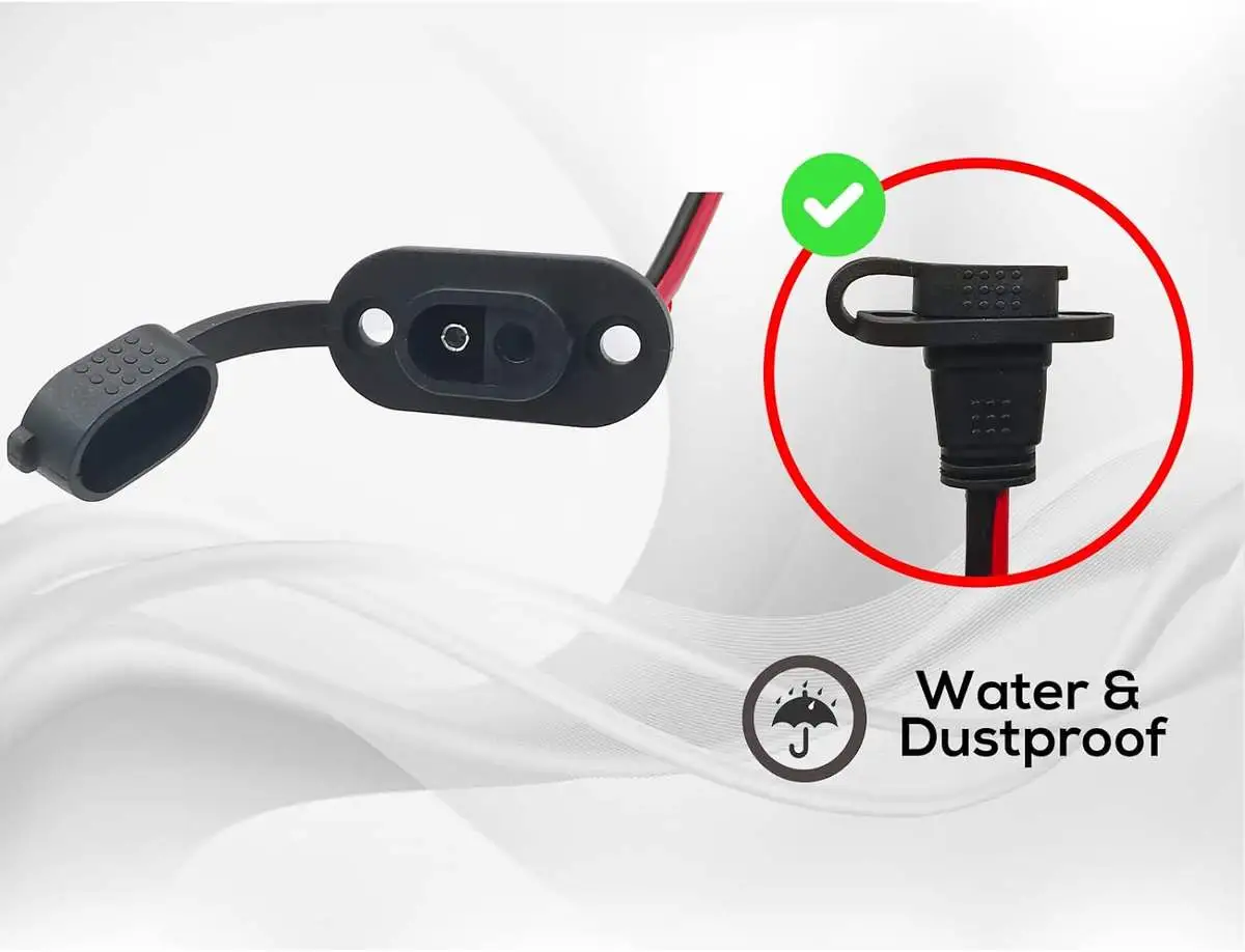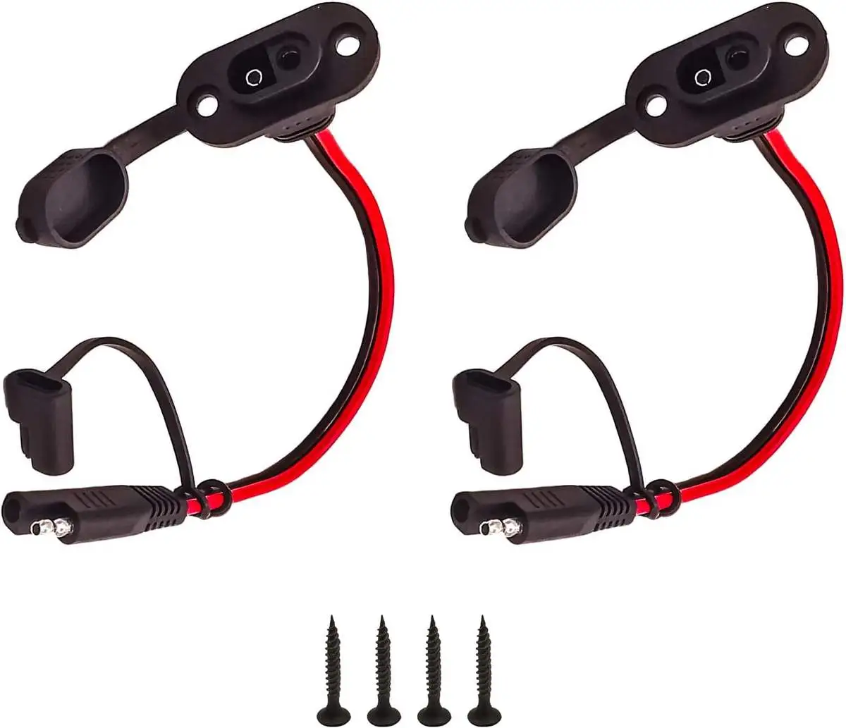【SAE SIDEWALL PORT】SAE power socket sidewall connectors, SAE panel mount power cables with waterproof cap, generally used for connection of solar battery and car/motorcycle/generator battery. Please confirm the polarity before connecting.