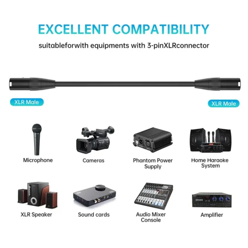 XLR 3 Pin Male to Male Connector Extension Microphone Cable