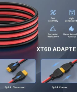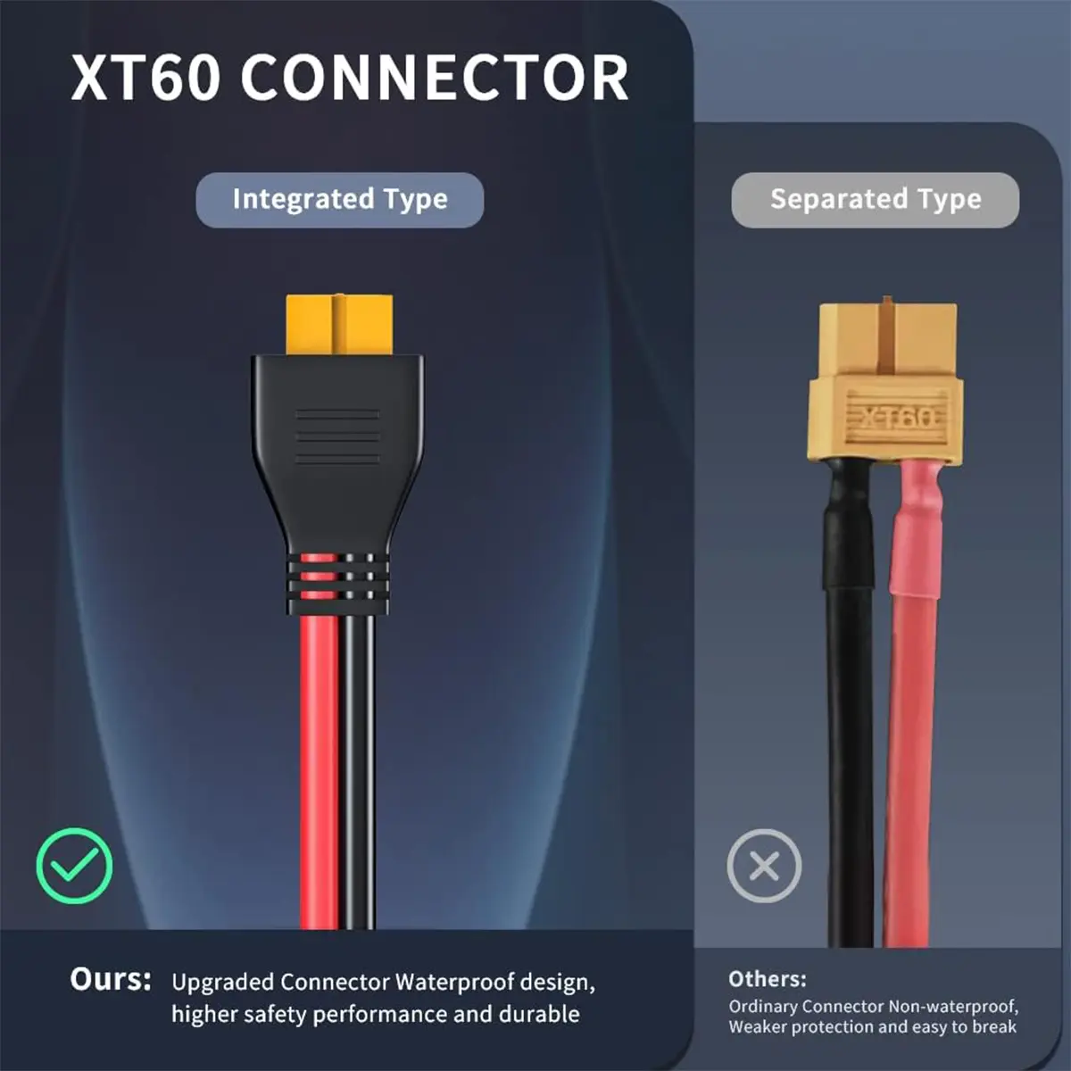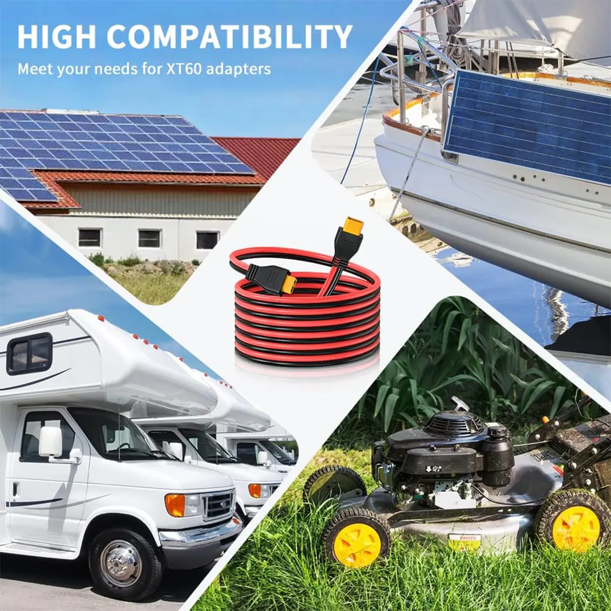4. WIDE APPLICATION – XT60 connector plug extension cable with male and female connector, which is used to extend most batteries and chargers with XT60 quick disconnect connectors. Widely used in battery packs, solar panels, solar generator, portable power stations, Model Planes, Model Cars, Model Ships, RV, boat and other equipment that requires XT60 plugs.