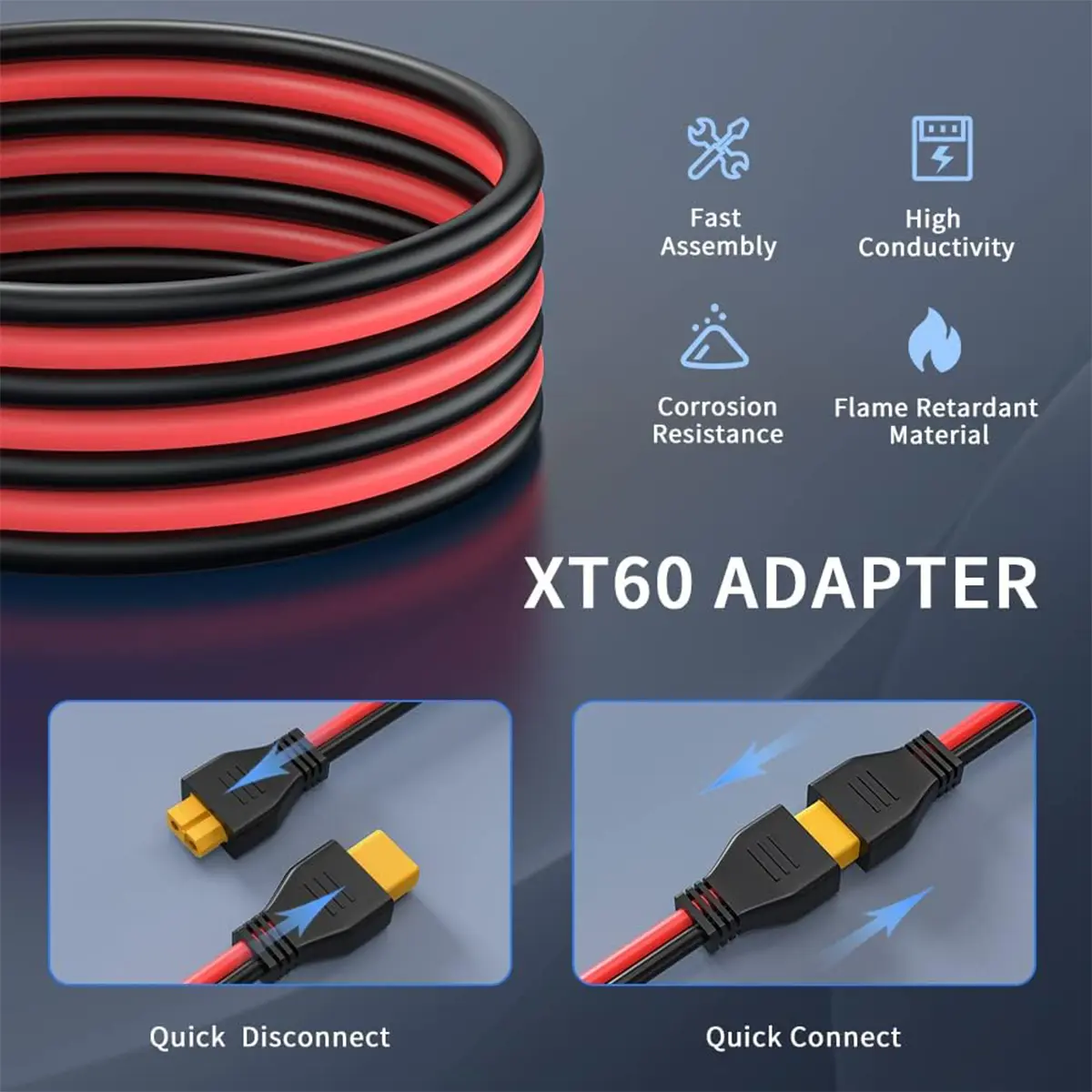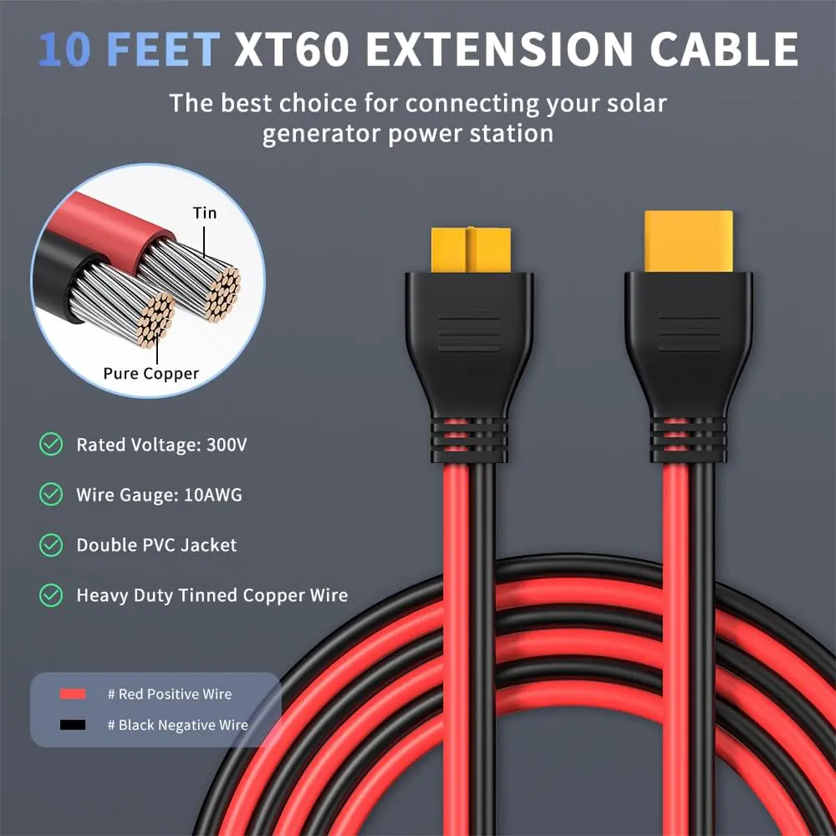 5. PREMIUM QUALITY SOLAR PANEL EXTENSION CABLE – Package including 1x 10Ft XT60 Extention Cable with Male and Female Conneter.